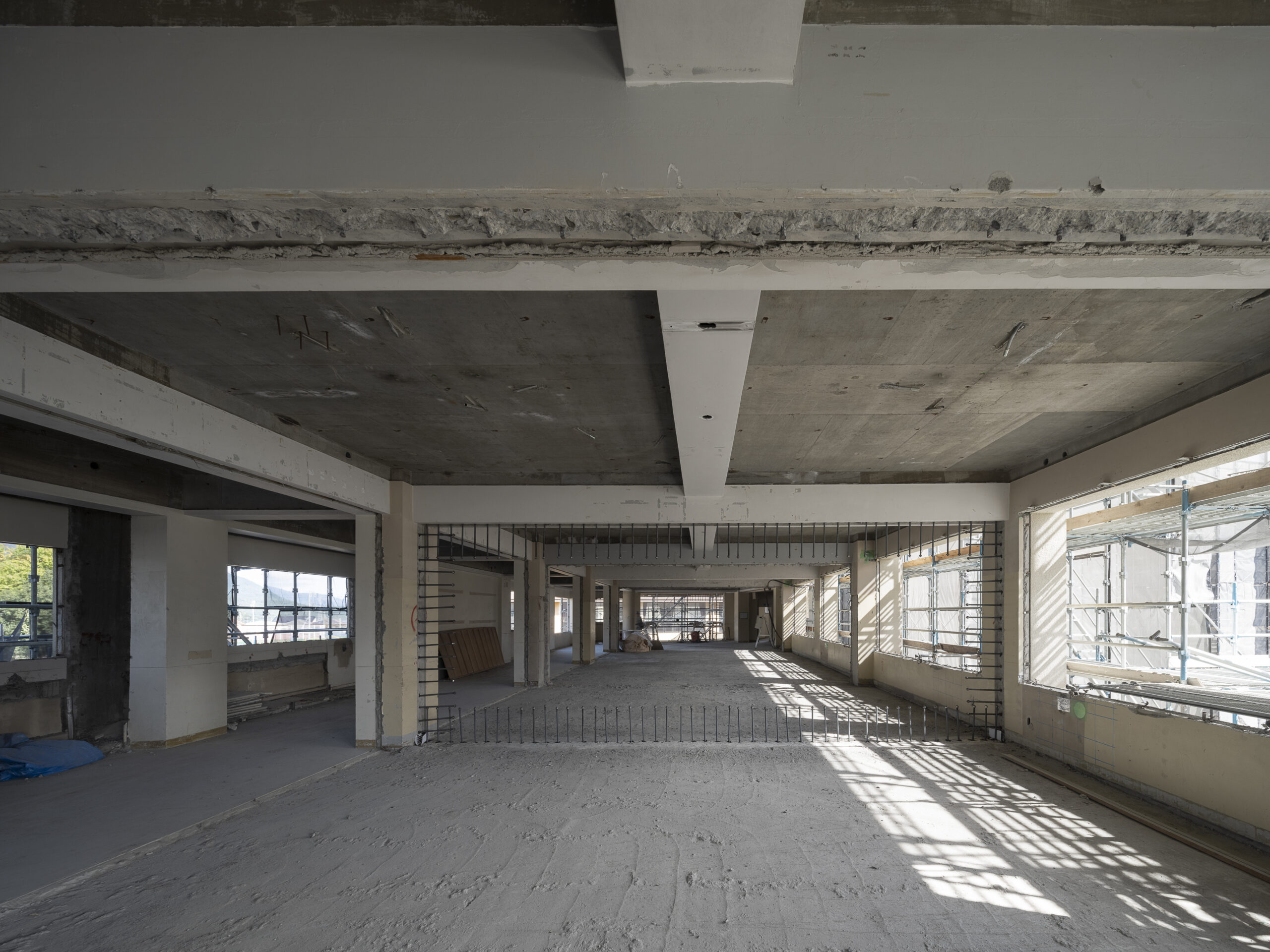 プロポーザルの提案では学校のスペースと生徒数を考え、使いながら施工を提案したが、この事は実現しなかった。同時期に完成した大阪府大東市立諸福小学校ではこの使いながら施工を実現している。