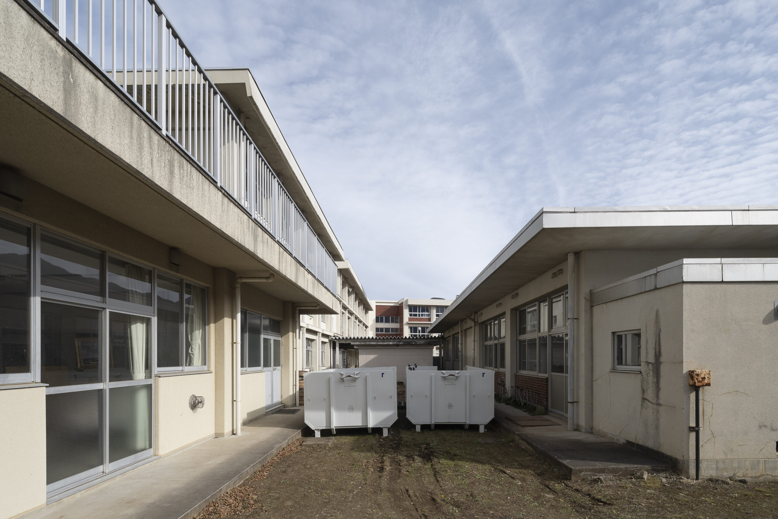 明見中学校は、昭和47年から順次建設された複数の棟で構成された中学校である。